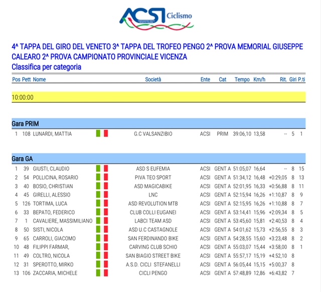 ordine d'arrivo categoria Gentleman A